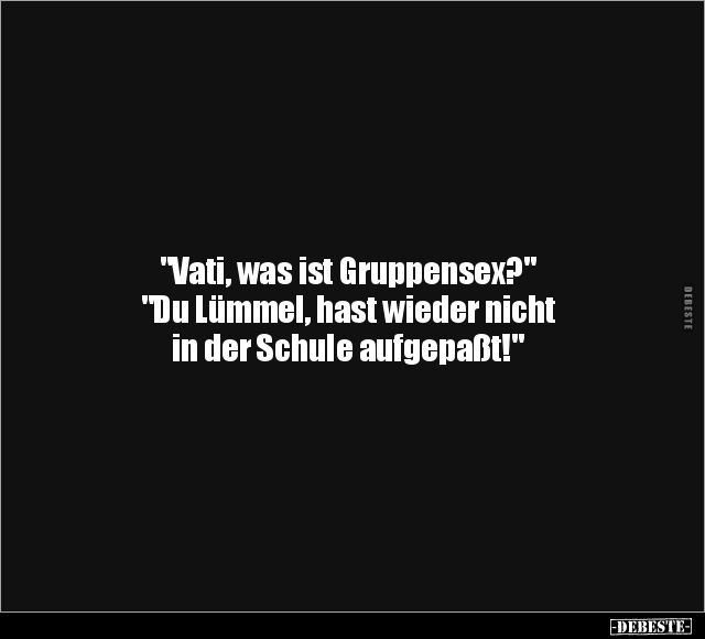 "Vati, was ist Gruppensex?" "Du Lümmel, hast wieder nicht in der Schule aufgepaßt!"