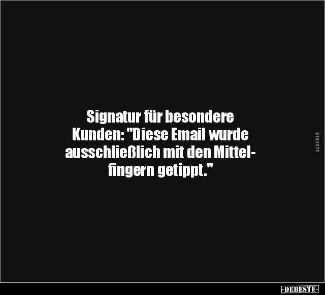 Signatur für besondere Kunden: "Diese Email wurde ausschließlich mit den Mittel- fingern getippt."