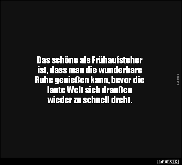 Das schöne als Frühaufsteher ist, dass man die wunderbare Ruhe genießen kann, bevor die laute Welt sich draußen wieder zu schnell dreht.