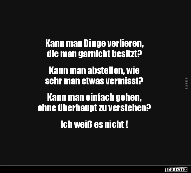 Kann man Dinge verlieren, die man garnicht besitzt? Kann man abstellen, wie sehr man etwas vermisst? Kann man einfach gehen, ohne überhaupt zu verstehen? Ich weiß es nicht !