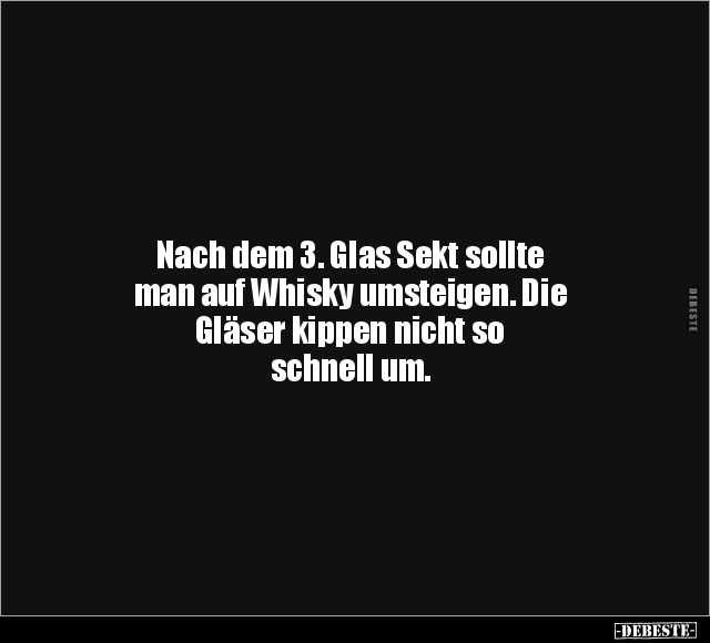 Nach dem 3. Glas Sekt sollte man auf Whisky umsteigen. Die Gläser kippen nicht so schnell um.