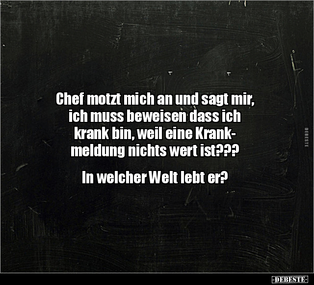 Chef motzt mich an und sagt mir, ich muss beweisen dass ich krank bin, weil eine Krank- meldung nichts wert ist??? In welcher Welt lebt er?