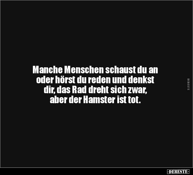 Manche Menschen schaust du an oder hörst du reden und denkst dir, das Rad dreht sich zwar, aber der Hamster ist tot.