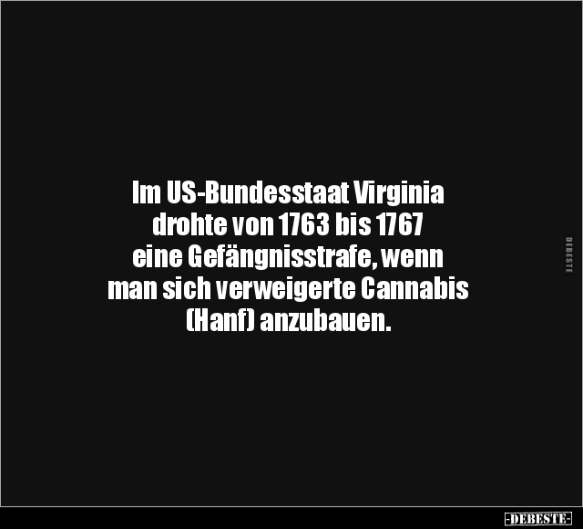 Im US-Bundesstaat Virginia drohte von 1763 bis 1767 eine Gefängnisstrafe, wenn man sich verweigerte Cannabis (Hanf) anzubauen.