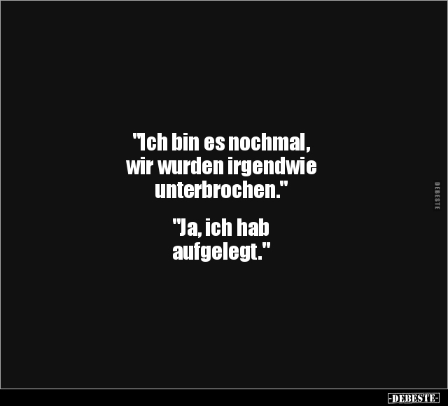 "Ich bin es nochmal, wir wurden irgendwie unterbrochen." "Ja, ich hab aufgelegt."