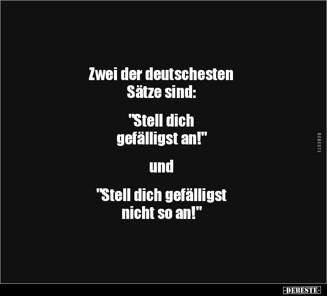 Zwei der deutschesten Sätze sind: "Stell dich gefälligst an!" und "Stell dich gefälligst nicht so an!"