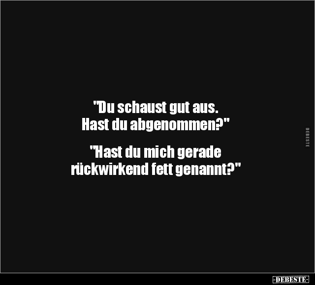 "Du schaust gut aus. Hast du abgenommen?" "Hast du mich gerade rückwirkend fett genannt?"