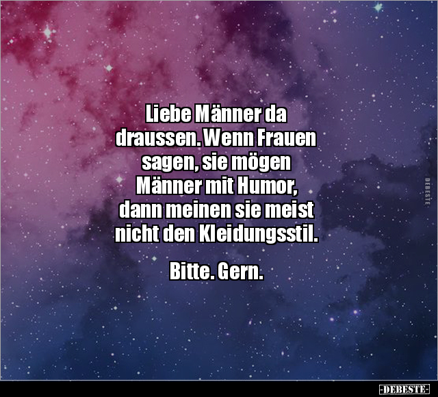 Liebe Männer da draussen. Wenn Frauen sagen, sie mögen Männer mit Humor, dann meinen sie meist nicht den Kleidungsstil. Bitte. Gern.