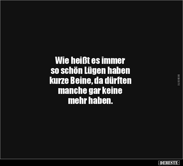 Wie heißt es immer so schön Lügen haben kurze Beine, da dürften manche gar keine mehr haben.