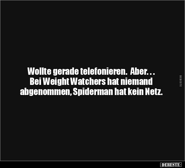 Wollte gerade telefonieren. Aber. . . Bei Weight Watchers hat niemand abgenommen, Spiderman hat kein Netz.