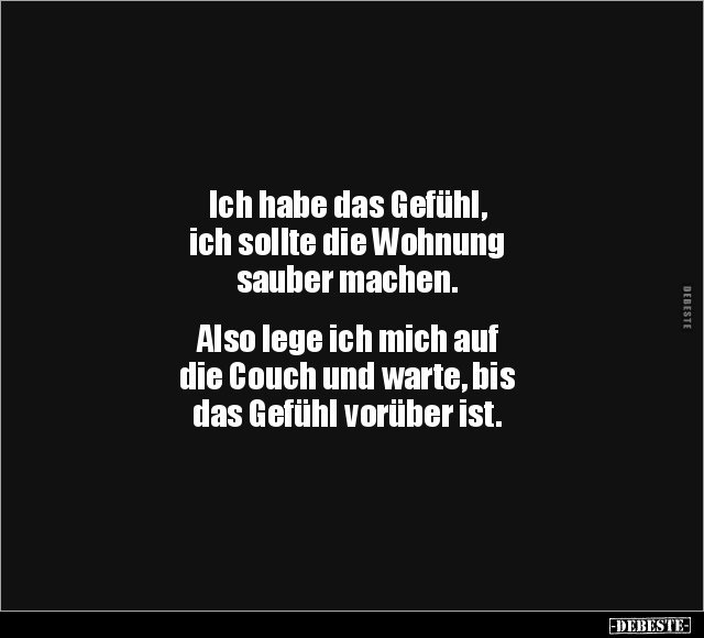 Ich habe das Gefühl, ich sollte die Wohnung sauber machen. Also lege ich mich auf die Couch und warte, bis das Gefühl vorüber ist.