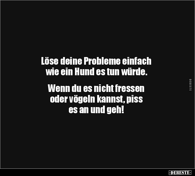 Löse deine Probleme einfach wie ein Hund es tun würde. Wenn du es nicht fressen oder vögeln kannst, piss es an und geh!