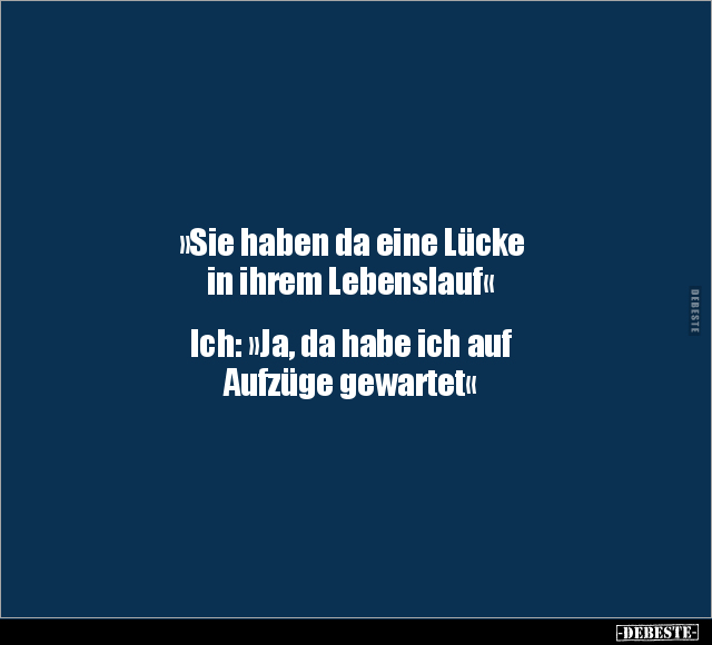 »Sie haben da eine Lücke in ihrem Lebenslauf« Ich: »Ja, da habe ich auf Aufzüge gewartet«