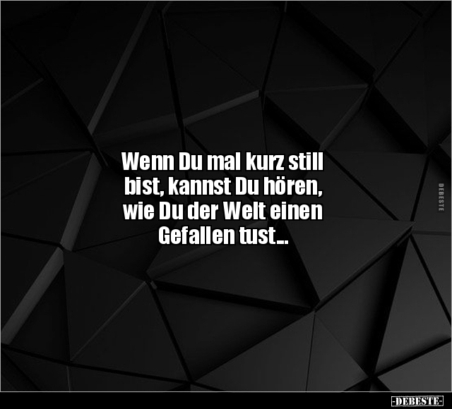 Wenn Du mal kurz still bist, kannst Du hören, wie Du der Welt einen Gefallen tust...