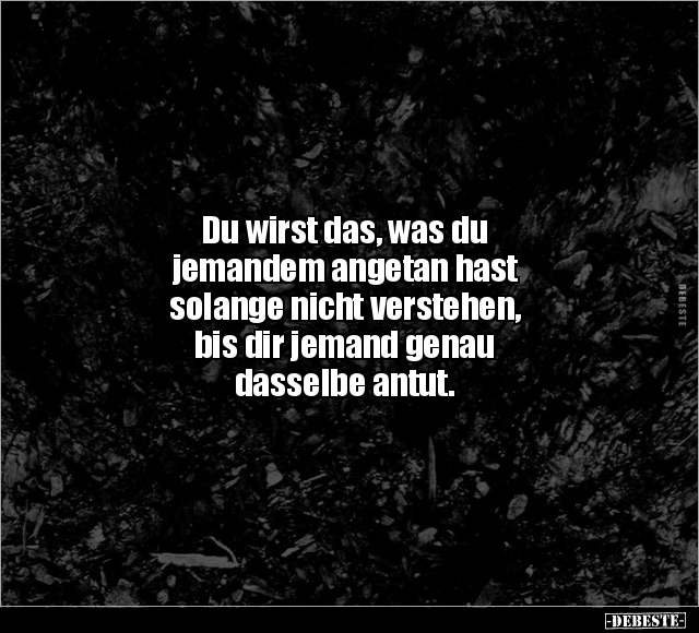 Du wirst das, was du jemandem angetan hast solange nicht verstehen, bis dir jemand genau dasselbe antut.