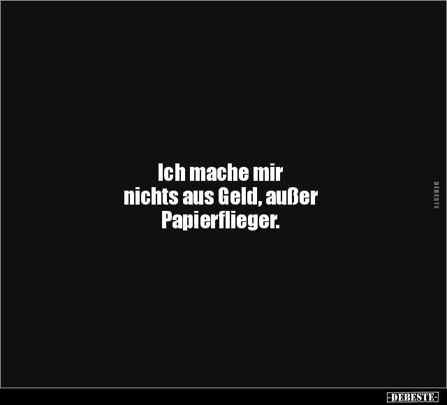 Ich mache mir nichts aus Geld, außer Papierflieger.