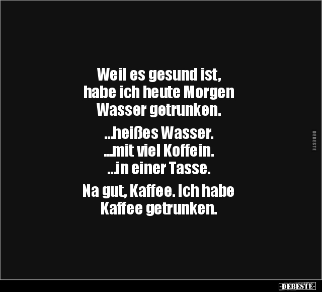 Weil es gesund ist, habe ich heute Morgen Wasser getrunken. …heißes Wasser. …mit viel Koffein. …in einer Tasse. Na gut, Kaffee. Ich habe Kaffee getrunken.