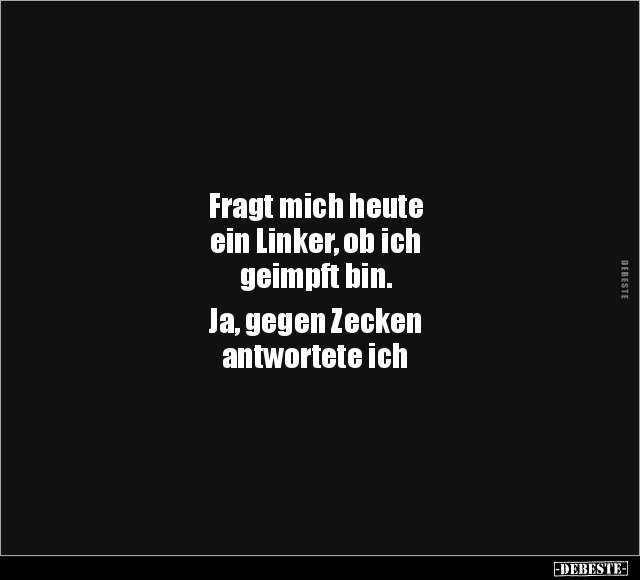 Fragt mich heute ein Linker, ob ich geimpft bin. Ja, gegen Zecken antwortete ich
