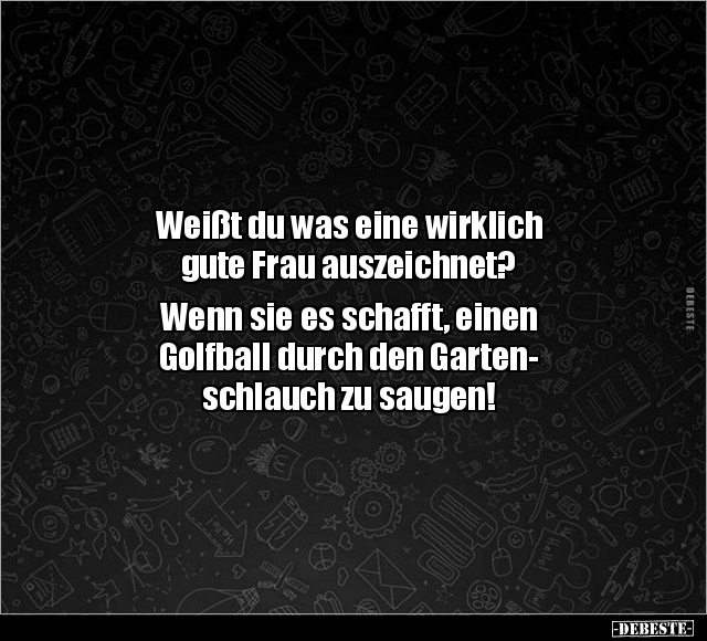 Weißt du was eine wirklich gute Frau auszeichnet? Wenn sie es schafft, einen Golfball durch den Garten- schlauch zu saugen!