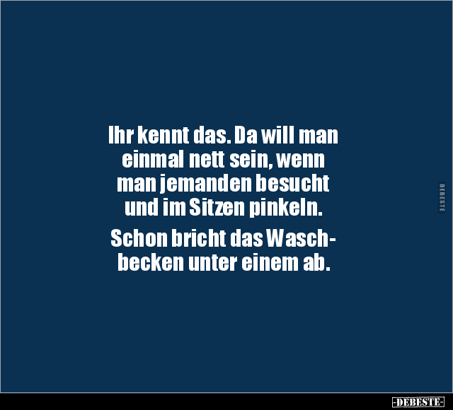 Ihr kennt das. Da will man einmal nett sein, wenn man jemanden besucht und im Sitzen pinkeln. Schon bricht das Wasch- becken unter einem ab.