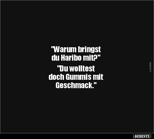 "Warum bringst du Haribo mit?" "Du wolltest doch Gummis mit Geschmack."