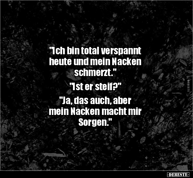 "Ich bin total verspannt heute und mein Nacken schmerzt." "Ist er steif?" "Ja, das auch, aber mein Nacken macht mir Sorgen."