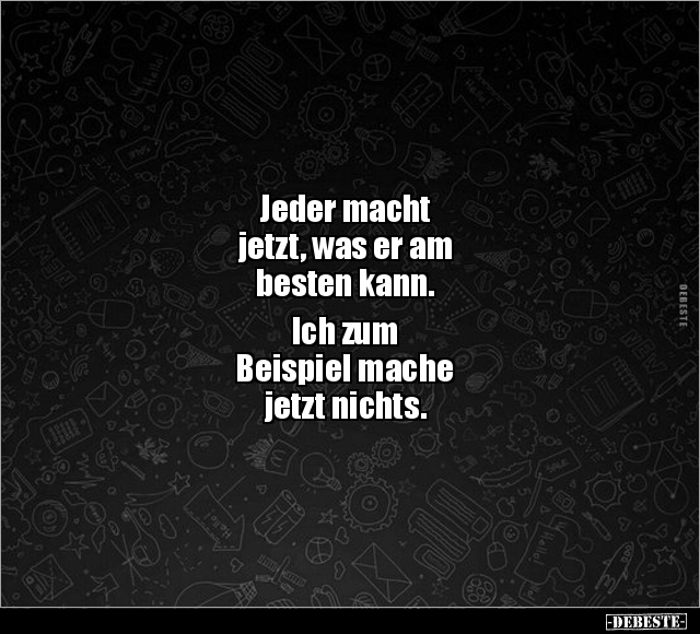 Jeder macht jetzt, was er am besten kann. Ich zum Beispiel mache jetzt nichts.