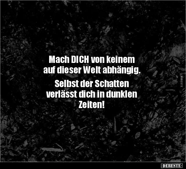 Mach DICH von keinem auf dieser Welt abhängig. Selbst der Schatten verlässt dich in dunklen Zeiten!