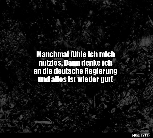 Manchmal fühle ich mich nutzlos. Dann denke ich an die deutsche Regierung und alles ist wieder gut!
