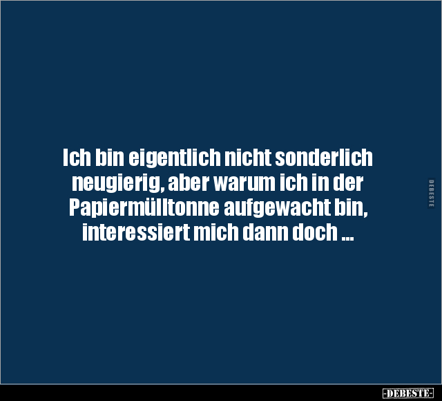 Ich bin eigentlich nicht sonderlich neugierig, aber warum ich in der Papiermülltonne aufgewacht bin, interessiert mich dann doch ...