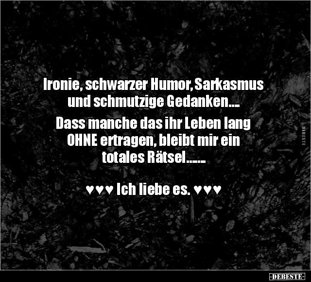 Ironie, schwarzer Humor, Sarkasmus und schmutzige Gedanken…. Dass manche das ihr Leben lang OHNE ertragen, bleibt mir ein totales Rätsel……. ♥♥♥ Ich liebe es. ♥♥♥