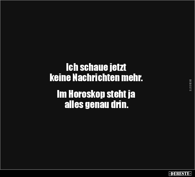 Ich schaue jetzt keine Nachrichten mehr. Im Horoskop steht ja alles genau drin.
