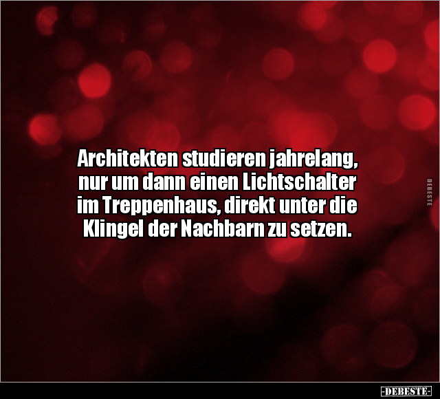 Architekten studieren jahrelang, nur um dann einen Lichtschalter im Treppenhaus, direkt unter die Klingel der Nachbarn zu setzen.