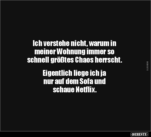 Ich verstehe nicht, warum in meiner Wohnung immer so schnell größtes Chaos herrscht. Eigentlich liege ich ja nur auf dem Sofa und schaue Netflix.
