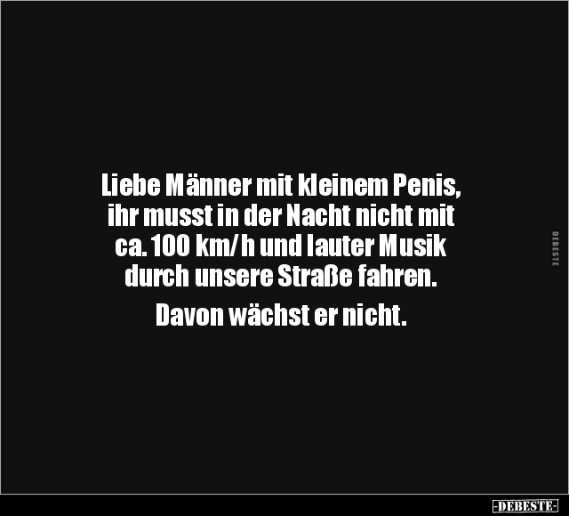 Liebe Männer mit kleinem Penis, ihr musst in der Nacht nicht mit ca. 100 km/h und lauter Musik durch unsere Straße fahren. Davon wächst er nicht.