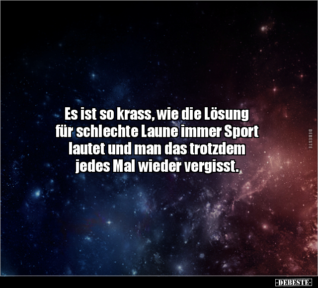 Es ist so krass, wie die Lösung für schlechte Laune immer Sport lautet und man das trotzdem jedes Mal wieder vergisst.