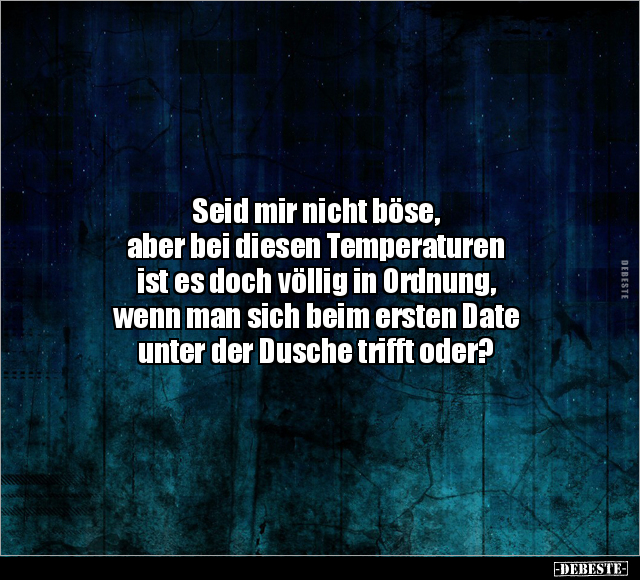 Seid mir nicht böse, aber bei diesen Temperaturen ist es doch völlig in Ordnung, wenn man sich beim ersten Date unter der Dusche trifft oder?