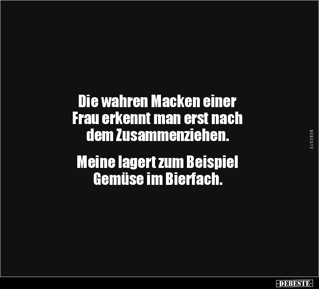 Die wahren Macken einer Frau erkennt man erst nach dem Zusammenziehen. Meine lagert zum Beispiel Gemüse im Bierfach.
