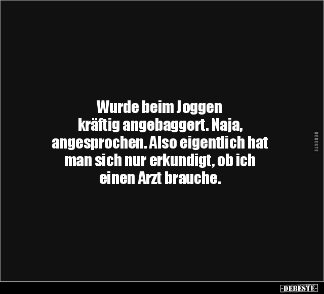 Wurde beim Joggen kräftig angebaggert. Naja, angesprochen. Also eigentlich hat man sich nur erkundigt, ob ich einen Arzt brauche.