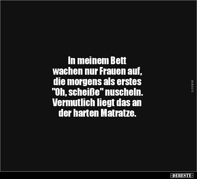In meinem Bett wachen nur Frauen auf, die morgens als erstes "Oh, scheiße" nuscheln. Vermutlich liegt das an der harten Matratze.