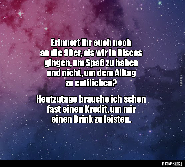 Erinnert ihr euch noch an die 90er, als wir in Discos gingen, um Spaß zu haben und nicht, um dem Alltag zu entfliehen? Heutzutage brauche ich schon fast einen Kredit, um mir einen Drink zu leisten.
