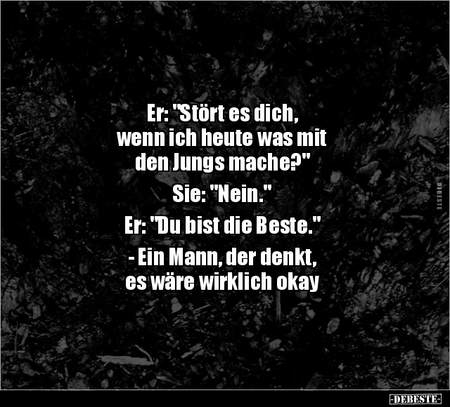 Er: "Stört es dich, wenn ich heute was mit den Jungs mache?" Sie: "Nein." Er: "Du bist die Beste." - Ein Mann, der denkt, es wäre wirklich okay