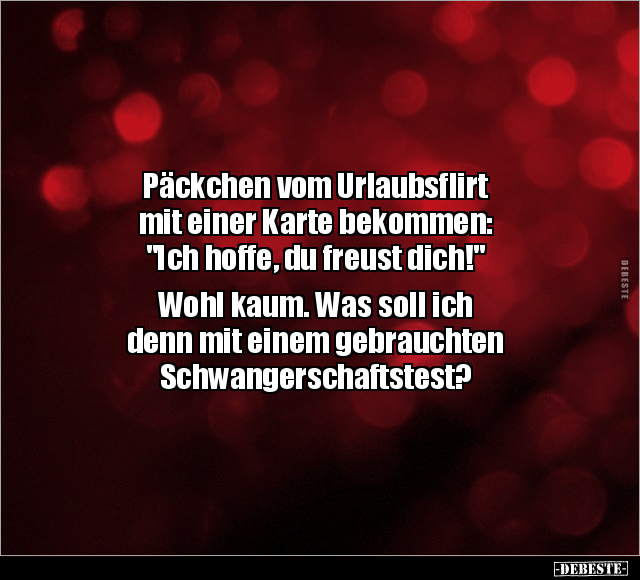 Päckchen vom Urlaubsflirt mit einer Karte bekommen: "Ich hoffe, du freust dich!" Wohl kaum. Was soll ich denn mit einem gebrauchten Schwangerschaftstest?