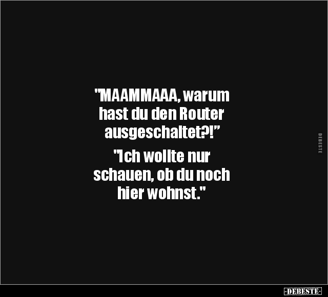 "ΜΑΑΜΜΑАА, warum hast du den Router ausgeschaltet?!” "Ich wollte nur schauen, ob du noch hier wohnst."