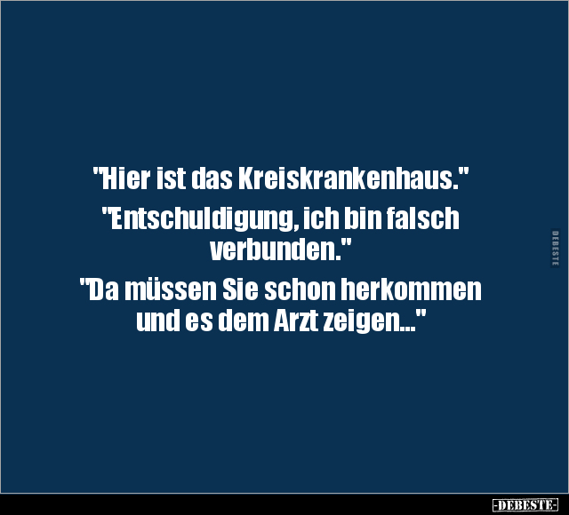 "Hier ist das Kreiskrankenhaus." "Entschuldigung, ich bin falsch verbunden." "Da müssen Sie schon herkommen und es dem Arzt zeigen..."
