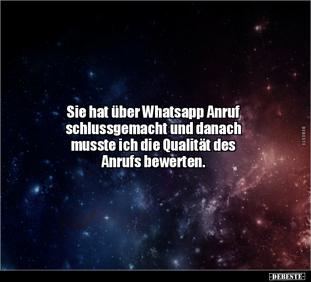 Sie hat über Whatsapp Anruf schlussgemacht und danach musste ich die Qualität des Anrufs bewerten.