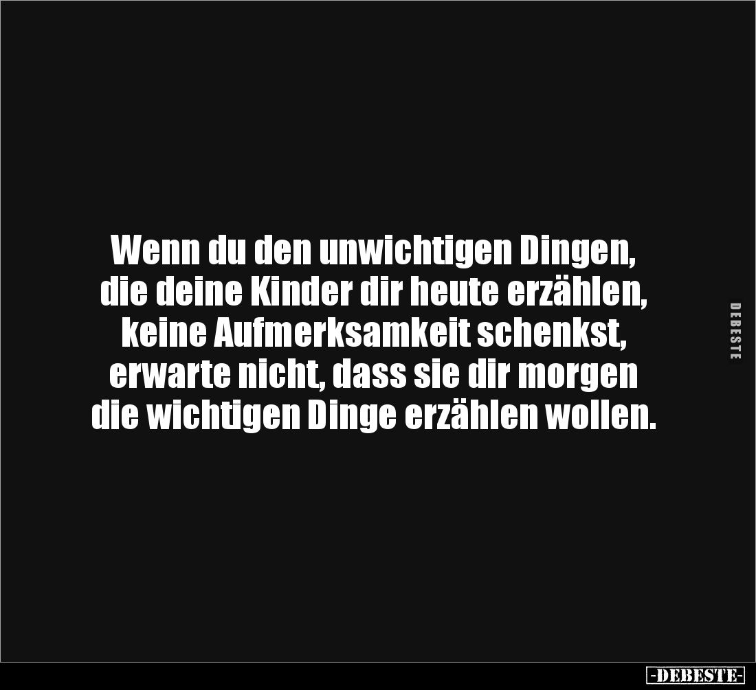 Wenn du den unwichtigen Dingen, die deine Kinder dir heute erzählen, keine Aufmerksamkeit schenkst, erwarte nicht, dass sie dir morgen die wichtigen Dinge erzählen wollen.