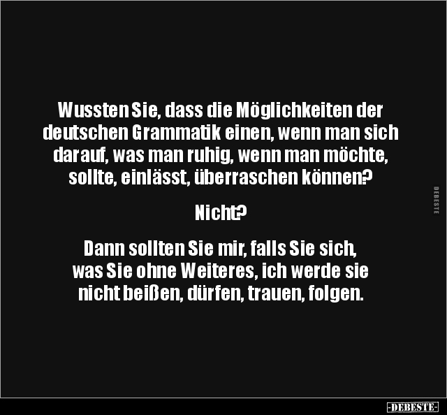 sollte, einlässt, überraschen können?