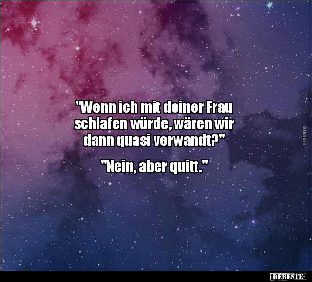 "Wenn ich mit deiner Frau schlafen würde, wären wir dann quasi verwandt?" "Nein, aber quitt."