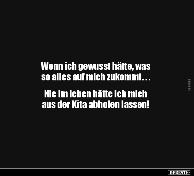 Wenn ich gewusst hätte, was so alles auf mich zukommt. . . Nie im leben hätte ich mich aus der Kita abholen lassen!